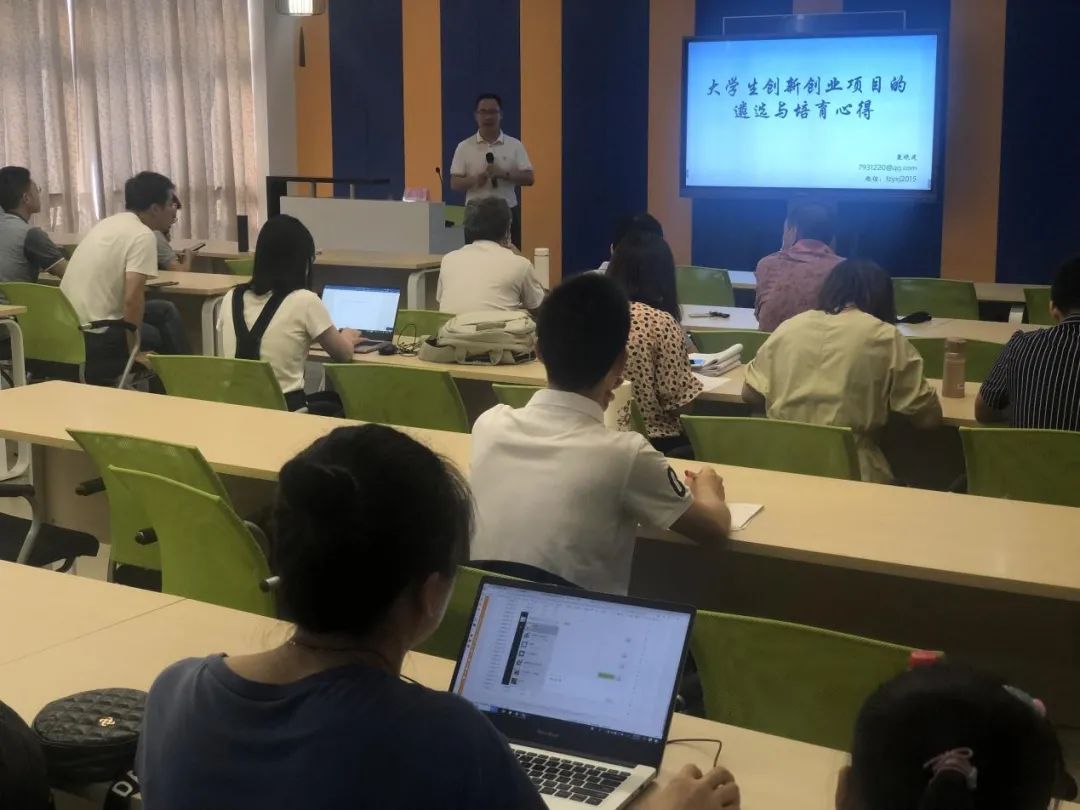 袁晓建教授就“互联网+”新规思考、如何遴选好 项目、项目培育等方面进行经验分享。在过程中,他同在座的老师对项目的遴选和培育进行了深入的探讨。现场互动良好,气氛浓烈,老师们纷纷表示受益匪浅。