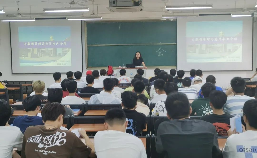 大数据学院召开2022级新生专业介绍会 为加深我院2022级新生对所学专业的进一步了解,尽快帮助新生们树立明确的大学学业目标。9月13日下午我院在教学五号楼,分别由各系主任主持举办了信息管理与信息系统、数据科学与大数据技术、大数据管理与应用、电子商务专业介绍与专业规划宣讲会。宁正元院长携三位副院长到各会场与新生们见面并予以热情嘉勉。 信息管理与信息系统 信息管理与信息系统系主任曾姣艳副教授从该“省一流”专业的专业概况、培养目标、课程体系与就业方向、师资队伍等方面进行了介绍,并结合行业及专业的发展现状和趋势,提出了专业学习的建议,同时殷切地希望新生们在新的大学环境中能互帮互助,共同进步,成为一个有凝聚力的、专业化的先进集体。 数据科学与大数据技术 数据科学与大数据技术系主任袁晓建副教授从大数据的概念及学习掌握大数据技术的意义方面展开阐述,对专业发展现状、就业岗位、专业方向与学习条件等方面进行详细介绍。最后,他向新生们提出了关于大学生学习兴趣、学习态度、学习未来的思考命题,希望新生们应在大一的时候就树立好学业目标,充分发挥自身能动性,努力接受大学新生活、新未来的挑战。 大数据管理与应用 大数据管理与应用系主任姚洁副教授从专业名称释义说起,将专业介绍内容分为专业概况、培养方案、竞赛科研、精英班四大模块,分别详细阐述了专业师资情况、培养目标和要求、课程设置、实践教学、专业应用方向等内容,使新生们对本专业的了解更加深入。最后,她就新生们今后的学习及生活等提出了建议和期望,要求大家尽快调整学习方式,找到适合大学学业的学习方法,积极参与各类学科竞赛等活动,丰富自己的大学生活。 电子商务 电子商务系主任谢人强教授针对本专业的办学特色进行重点介绍。在专业师资力量、专业教学计划、实习技能提升、就业前景等多个层面向新生们展现了作为我院首个“国一流”专业的办学历程和建设水平。并向新生们提供了更高效的学习策略和更深度的专业认知。最后,他向专业新生表达了良好的祝福,希望新生们通过刻苦的学习都有一个光明的专业发展未来! 大数据学院办公室 2022年9月13日