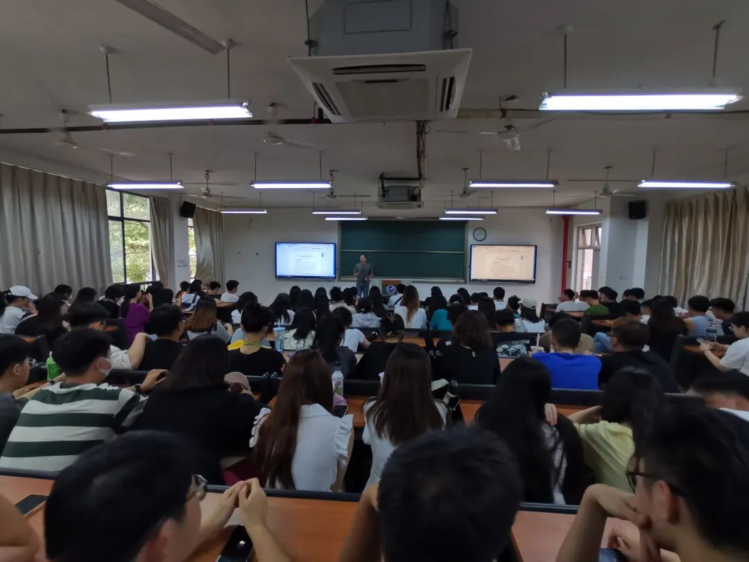 电子商务系主任谢人强教授针对本专业的办学特色进行重点介绍。在专业师资力量、专业教学计划、实习技能提升、就业前景等多个层面向新生们展现了作为我院首个“国一流”专业的办学历程和建设水平。并向新生们提供了更高效的学习策略和更深度的专业认知。最后,他向专业新生表达了良好的祝福,希望新生们通过刻苦的学习都有一个光明的专业发展未来!