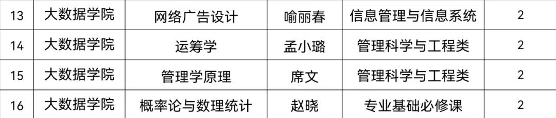 近日,经学校教学发展中心组织专家评审。我院教师喻丽春、孟小璐、席文、赵晓2022年度申报课程《网络广告设计》、《运筹学》、《管理学原理》、《概率论与数理统计》,获认定为校级线上线下混合式一流课程。