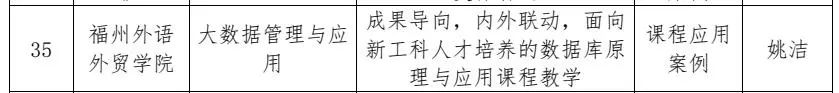 近日,根据《福建省新工科教育联盟关于公布新工科教育专家库建设、优秀教学案例征集、共建共享实践平台入选名单的通知》,我院叶福兰教师入选“福建省新工科教育专家库”、姚洁教师的《成果导向,内外联动,面向新工科人才培养的数据库原理与应用课程教学》入选“福建省新工科教育优秀案例”、“大数据创新实践基地”入选“福建省高校新工科共建共享实践平台”。