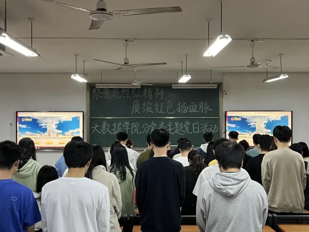 家国又清明,鲜花献英烈。为致敬时代先锋,寄托对革命先烈的哀思,引导党员铭记先烈光辉事迹、继承先烈遗志,将为国为民的革命精神与爱国精神内化于心,外化于行,大数据学院分党委于2023年4月4日在实3-102开展“祭奠英烈弘精神,赓续红色扬血脉”清明节主题党日活动。
