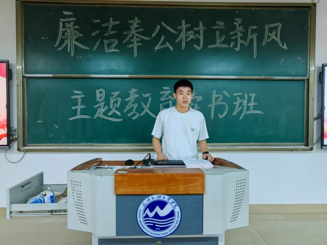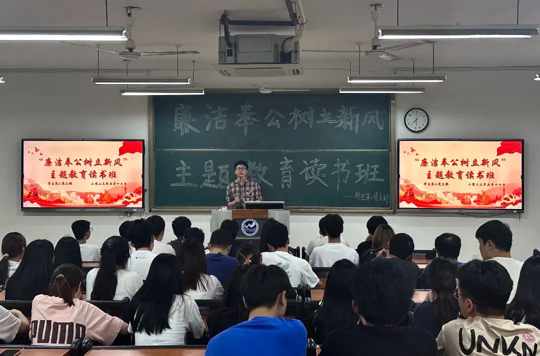 大数据学院学生第二党支部于教5202开展“廉洁奉公树立新风”专题学习研讨会,会议由学生第二党支部书记杨兴鑫同志主持。杨兴鑫同志指出,廉洁从政,秉公用权,是党的光荣传统和优郎作风。全体学员要以激浊扬清的实际行动奋勇争先,强化自我修炼,正心明道、怀德自重,勤掸”思想尘”、多思"贪欲害”。学员们纷纷表示将坚持以党性立身做事,提高政治站位,以内无妄思保证外无妄动,永葆忠诚干净担当的政治本色。