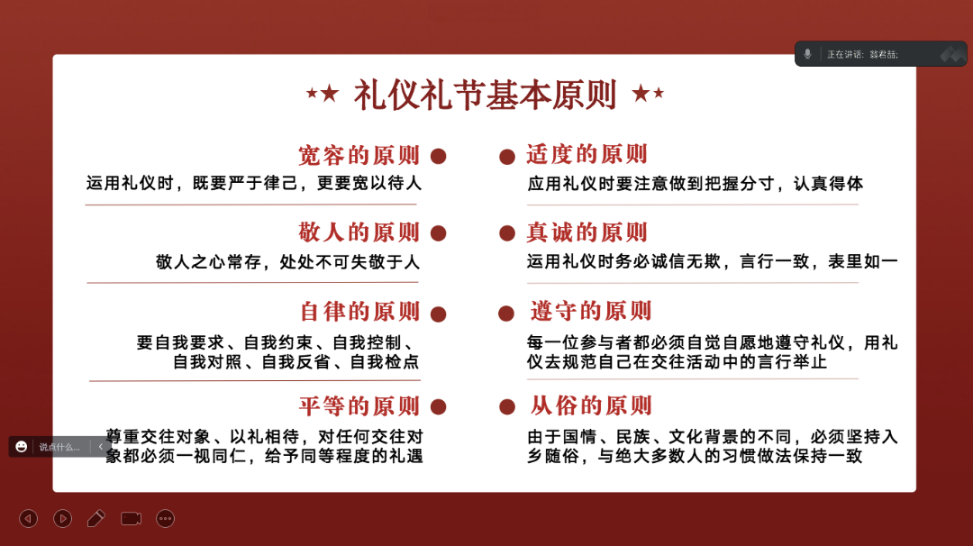为传承中华优秀传统美德,深化文明礼仪教育,引导党员传承红色基因、提升品德修养,培育讲文明、懂礼貌、知礼仪的新时代党员先锋,2023年7月31日大数据学院各学生党支部分别于腾讯会议开展“尊师重道·恭敬有序——增强党员意识,做好礼仪礼节”主题教育专题党课。