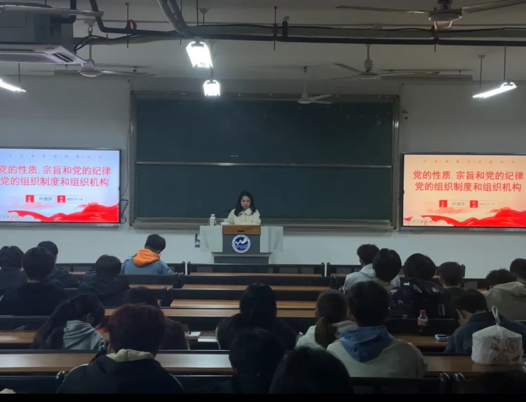 2023年11月15日晚上18:30,叶倩萍老师在实3201开展了以“党的宗旨和党的纪律,党的组织制度和组织机构”为主题的党校培训,旨在提升全体学员的党性修养以及对组织制度、形式和纪律的理解,强调要牢记党的规章制度,遵守党的纪律,强化宗旨观念,以实现中华民族伟大复兴为己任,不负党和人民的殷切期望。
