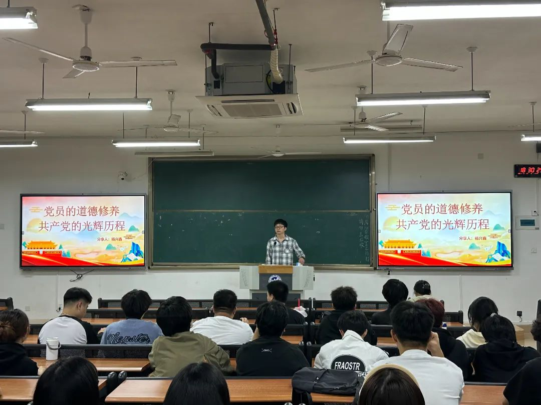 2023年11月10日晚上18:30,杨兴鑫老师在教5102开展了以“党员的道德修养、中国共产党的光辉历程”为主题的党校培训,旨在带领全体学员领悟到中国共产党从成立初期艰难卓绝的奋斗,让学员们深入领悟党性修炼的题义,强调要持续发扬党的优良传统,牢固红色思想根基,争做党的事业的接班人。