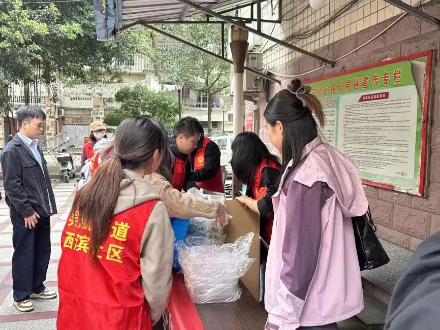 活动伊始,西滨社区负责人根据党员的分组,依次向他们分发活动走访过程中需要的小礼品。