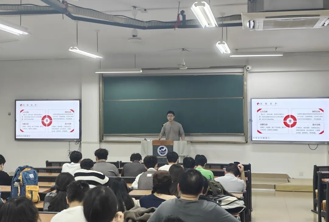 班会上,辅导员们结合典型安全事件,从校园生活、校外活动、线上防护、健康管理四个方面,拆解高频安全隐患,用真实案例让同学们直观感知风险,同时细致讲解应对方法。此外,班会还聚焦火灾、地震、溺水、烧伤等紧急场景,通过图文演示+步骤拆解,清晰讲解关键自救方法。