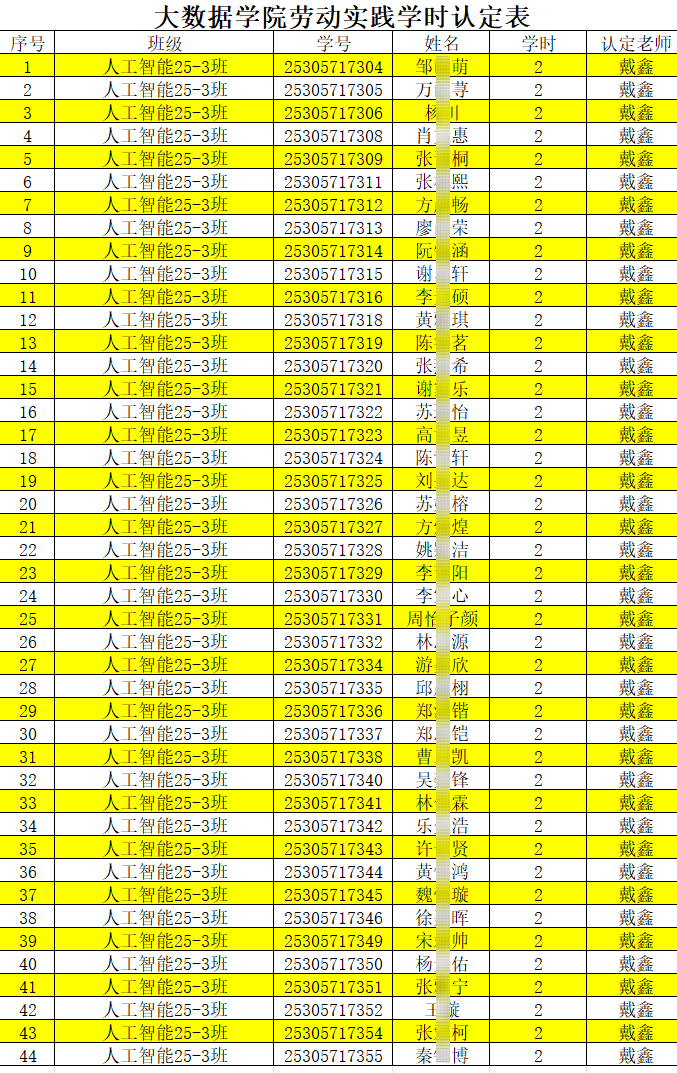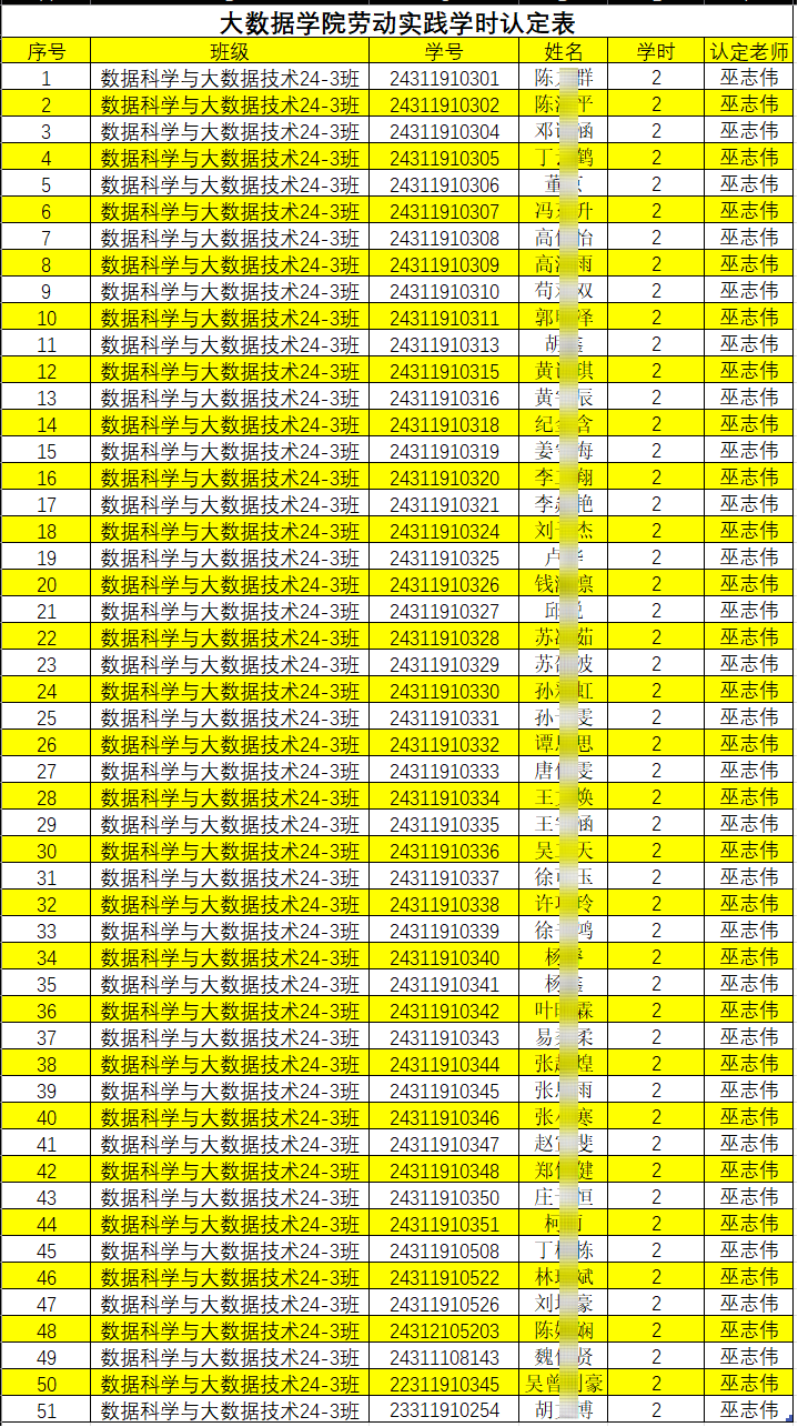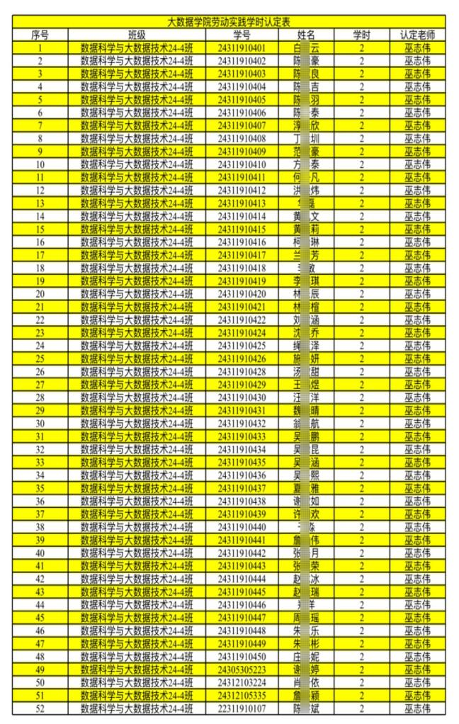 本周劳动实践学时认定表