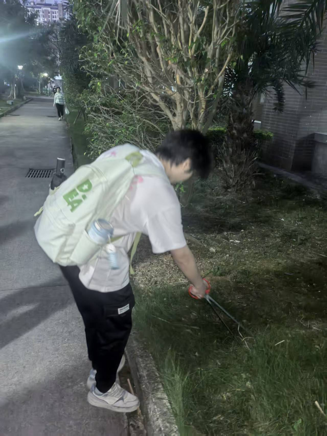 活动开始前,各班结合清洁区域特点,提前做好分工安排:数科24-3班负责教工宿舍1号楼到东区10、11号学生宿舍楼周围的主干道与绿化带,数科24-4班则聚焦东区后门到风车处、北区到东区6号学生宿舍楼新建栈道及6号宿舍楼周围的主干道、栈道与绿化带。人工智能25-3班负责宿舍1号楼周边绿化带及主干道,人工智能25-4班负责校门口周边绿化带及主干道。明确的区域划分,让同学们一到现场便迅速进入状态。