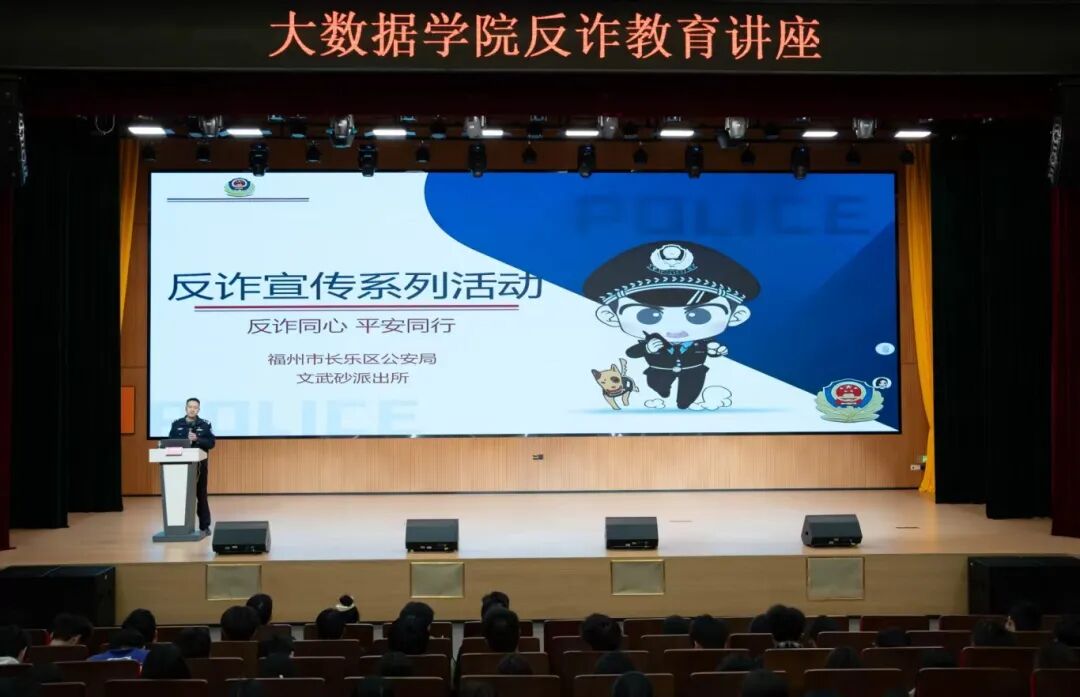 【“数”说安全】大数据学开展反诈教育讲座 为提升同学们的反诈防骗意识与能力,筑牢校园安全防线,保障学生的财产安全与生活环境。11月18日下午,大数据学院联合总务处在滨海校区云帆报告厅开展反诈教育讲座。本次讲座邀请了长乐区文武砂派出所副所长蒋桂文主讲。 讲座中,蒋桂文副所长结合当前校园内高发的网络诈骗典型案例,以案说法,通过真实数据的展示,深入浅出地剖析了各类诈骗作案手法与防范措施,在每个案例分享的结尾,都郑重提醒大家务必警惕不法分子的各类忽悠,同时反复强调了树立和强化反诈骗意识的重要性。 最后,蒋桂文副所长提醒大家务必下载《国家反诈中心》APP并开启拦截功能。他耐心解释道,该APP已收录各类已知诈骗类型,能为个人财产安全提供有效防护;同时强调,大家仍需提高自身反诈意识,相关部门也会持续更新新增诈骗类型数据库,确保防护功能与时俱进。 本次防诈骗教育讲座的成功举办,为学院学子的成长发展筑牢了安全防线。通过本次讲座,加强了同学们识别防范诈骗的意识与技能,树立辩证思维、摒弃贪念、警惕陌生诱惑,以清醒认知和自觉行动,共同守护校园安全。 大数据办公室 2025年11月20日