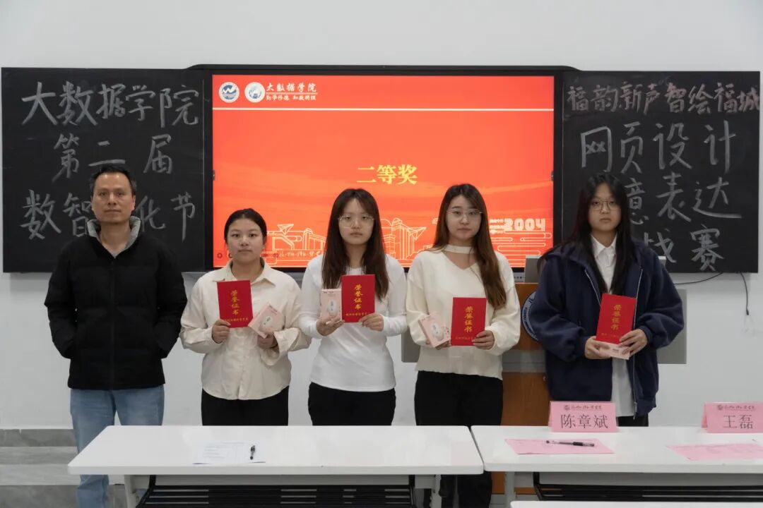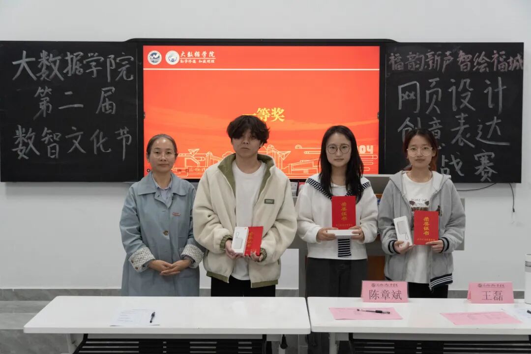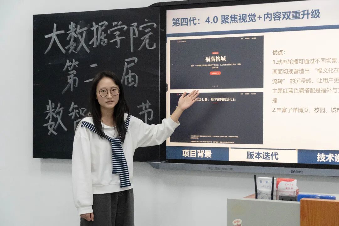 【数智引航 创新未来】大数据学院第二届数智文化节之“福韵新声·智绘福城”网页设计创意表达挑战赛圆满结束! 为了以数字技术激活传统福文化的生命力,搭建校园智慧与城市文脉的对话桥梁,我院第二届数智文化节之“福韵新声·智绘福城”网页设计创意表达挑战赛于11月18日在长乐校区人文楼2-304拉开帷幕。本次大赛特邀陈章斌老师、郑逸凡老师、王磊老师担任评委,为赛事提供专业指导。 参赛选手作品展示 从容应队 铁道游记队 你说的都队 春山可望队 别和我作队 南波万队 福韵相连队 现场答辩环节 答辩现场氛围在评委与选手的问答中升温,评委围绕“网页效果实现逻辑”“核心技术与软件应用”“后续优化方向”关键问题深入交流。从代码细节拆解、设计适配建议到优化路径探讨。既让现场氛围热烈高涨,也助力选手精准把握作品短板明确了后续的改进方向。 获奖情况 经过各队的成果展示与评委老师的专业点评,大数据学院第二届数智文化节之“福韵新声·智绘福城”网页设计创意表达挑战赛获奖名单如下: 一等奖: 南波万队 二等奖: 你说的都队 别和我作队 三等奖: 从容应队 铁道游记队 福韵相连队 优秀奖: 春山可望队 总结点评 在本次大数据学院第二届数智文化节之“福韵新声·智绘福城”网页设计创意表达挑战赛的点评环节中,陈章斌老师对同学们作品彰显的创新探索精神予以高度认可。老师指出参赛作品基础扎实,但静态呈现为主的表现形式仍有优化空间,勉励大家深耕动态化、交互化设计,并着重强调,需强化理论与实践转化效能。 大数据学院第二届数智文化节“福韵新声 智慧福城”网页设计挑战赛,充分彰显数院学子的创意才情与专业功底。参赛选手以技术为基、创意为核,推动“福”文化与福城特色在数字化表达中焕发新活力。愿同学们秉持创新执着与文化热忱,深耕专业领域,续写奋进华章。 大数据学院办公室 2025年11月23日