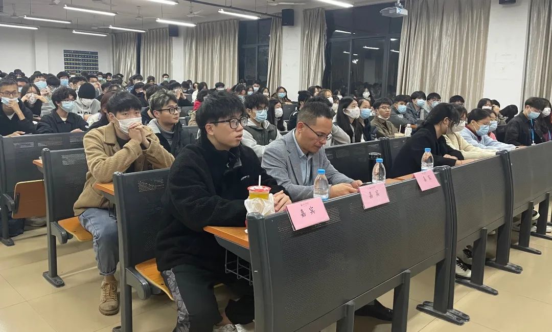 讲座伊始,袁晓建老师以诙谐幽默的话语开篇,向同学们分析了比赛与实战两者之间的联系。随之,他根据自己过往的经验总结出以下心得:1.要注重提升自身的专业素养及专业技术;2.参赛要按规则筹划;3.比赛即是实践,创业即是实战。最后,袁晓建老师建议同学们要发展自己所感兴趣的技能并深入学习,以便在未来的就业及发展中取得更大优势。