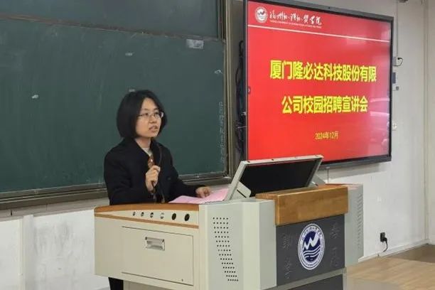 宣讲会上,厦门隆必达商学院副院长杨烨娟就公司核心业务、业务范围、覆盖地区、合作伙伴等方面进行详细介绍。强调在技术研发、市场拓展等高新技术领域的突出成果,表达期待优秀毕业生加入团队的期望。