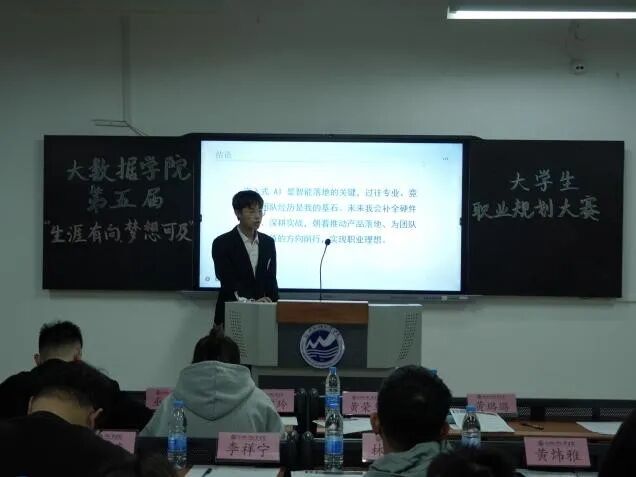 【数“职”匠心】大数据学院第五届“生涯有向,梦想可及”大学生职业规划大赛圆满落幕 职业规划是大学生锚定成长方向、衔接校园与职场的关键纽带。为强化我院学子职业发展意识,提升就业核心竞争力,大数据学院第五届职业规划大赛决赛于11月11日在我校长乐校区教5-308教室顺利举办。 出席本次大赛的评委老师有大数据学院办公室副主任、分团委书记黄荣华老师;大数据学院分团委常务副书记沈婉玲老师及大数据学院各专业辅导员。 01 赛场风采 经过初赛的层层选拔,有15位选手脱颖而出晋级决赛。比赛分为两个赛道,成长赛道的选手从自我认知、成长路径、阶段衔接和未来规划四大维度开始展示,就业赛道的选手从岗需对标、实证实练、求职精备、适配落地四个方向展开描述,结合大数据专业特性,呈现了数据分析师、算法工程师等岗位的规划方案,兼具专业性和可行性。 02 赛果揭晓 就业赛道一等奖:高丛 就业赛道二等奖:朱思甜 此外,获得就业赛道三等奖的选手有:数据科学与大数据技术22-3班张婷,获得优秀奖的选手有:数据科学与大数据技术22-2班李垚垚 成长赛道一等奖:尚怡萱 成长赛道二等奖:黄泓恺、温怡俊 成长赛道三等奖:吴鸿飞、林舒艺、柯欣榆 成长赛道优秀奖:刘颐隆、梁利凯、赵依柔、胡希阳、刘语柔 职业规划大赛不仅是职业规划能力的竞技舞台,更是我院为学子厘清职业方向、打磨求职技能,为未来职场生涯筑牢根基所搭建的职业指导平台。愿我院学子以此次大赛为起点,将规划转化为行动,在大数据领域的职业赛道上精准发力、行稳致远! 大数据学院办公室 2025年11月15日