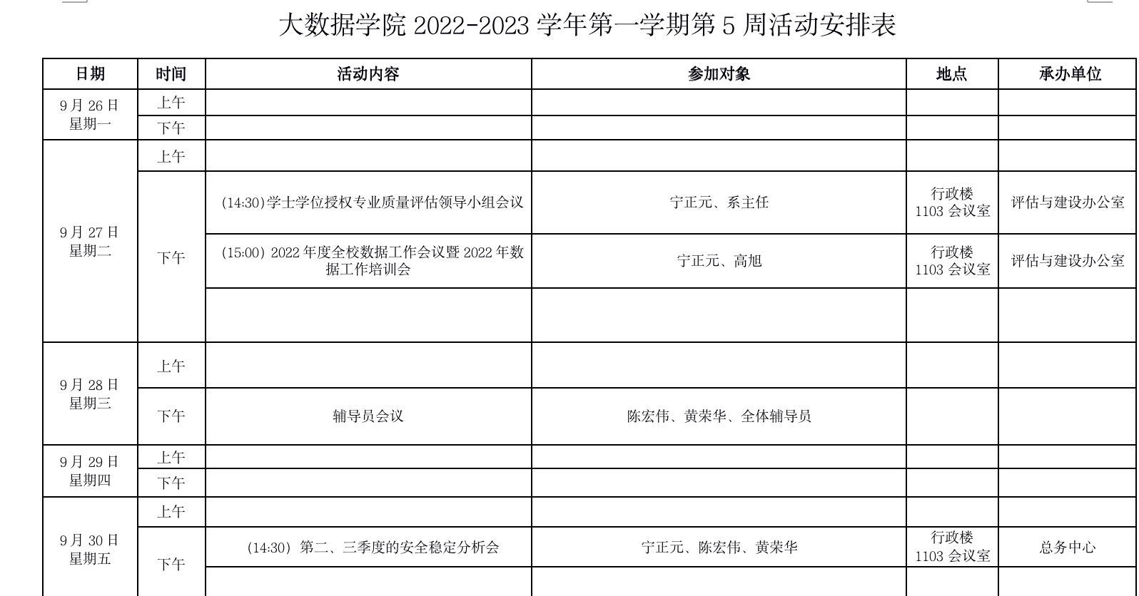 大数据学院2022-2023学年第一学期第5周活动安排表