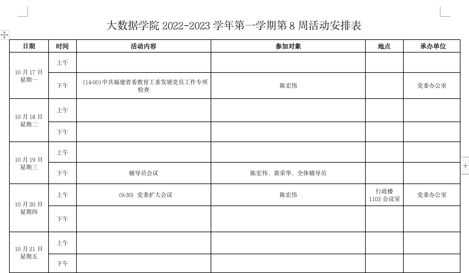 大数据学院2022-2023学年第一学期第8周活动安排表