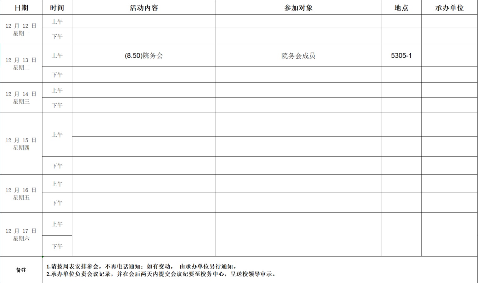 学院周表