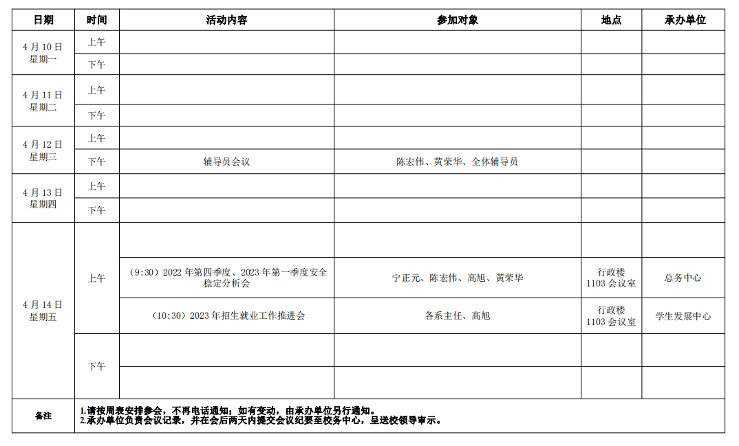 大数据学院2022-2023学年第二学期第9周活动安排表