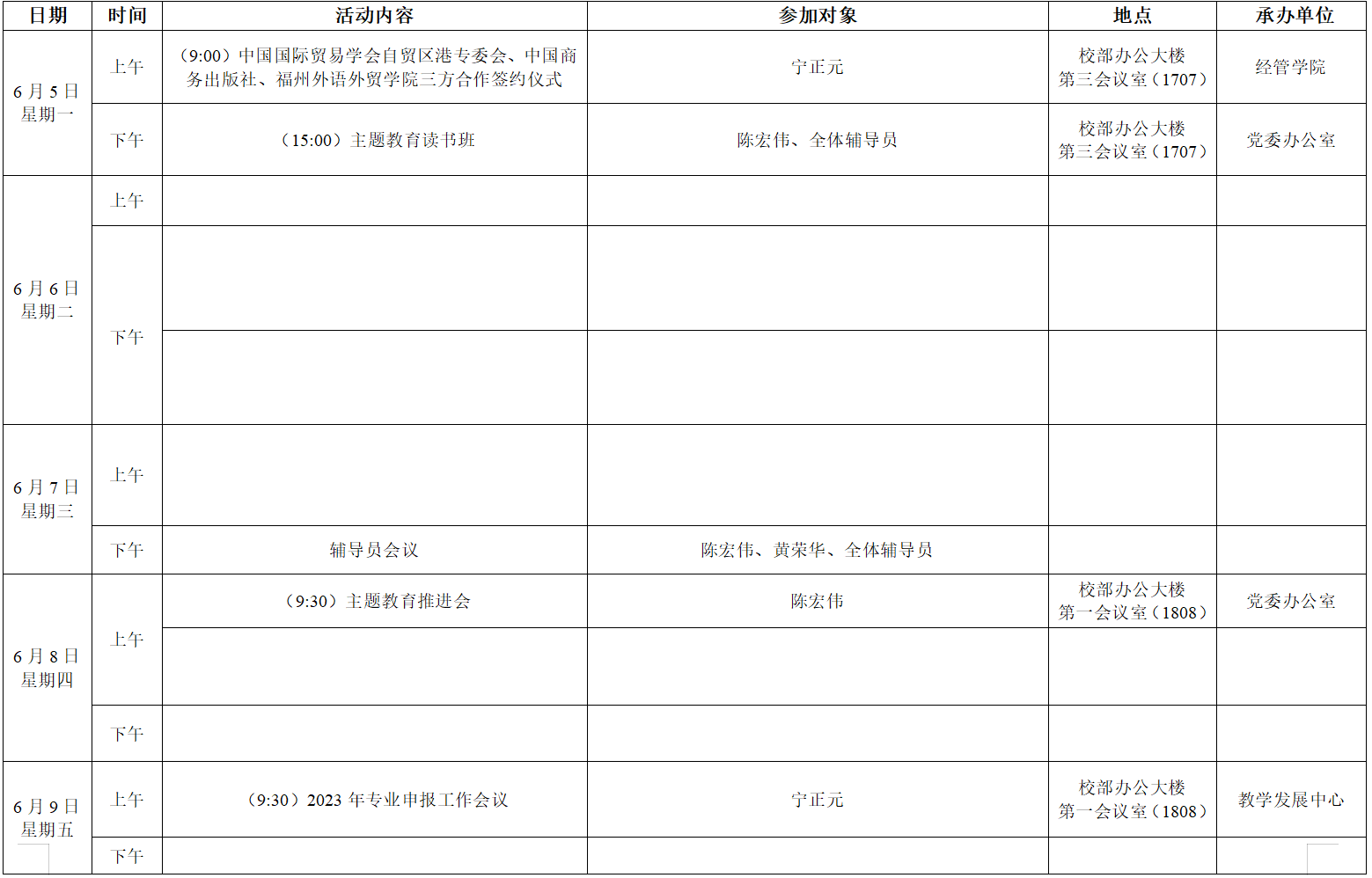 大数据学院2022-2023学年第二学期第17周活动安排表
