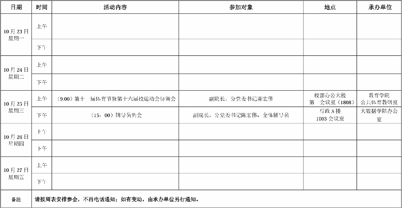 大数据学院2023-2024学年第一学期第8周活动安排表