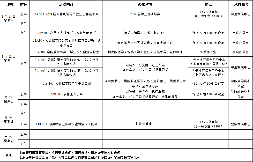 大数据学院2023-2024学年第二学期第3周活动安排表