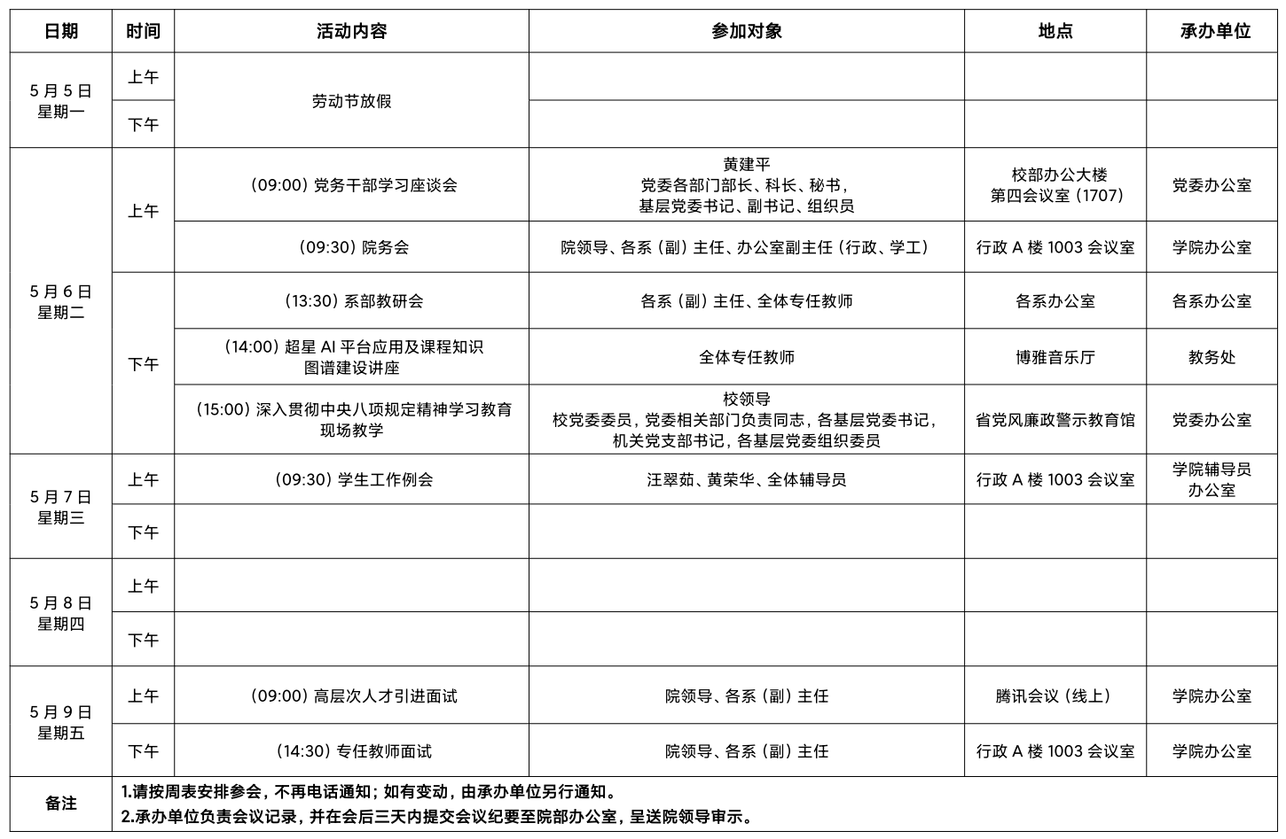 大数据学院 2024-2025 学年第二学期第 12 周活动安排表