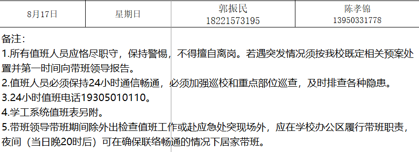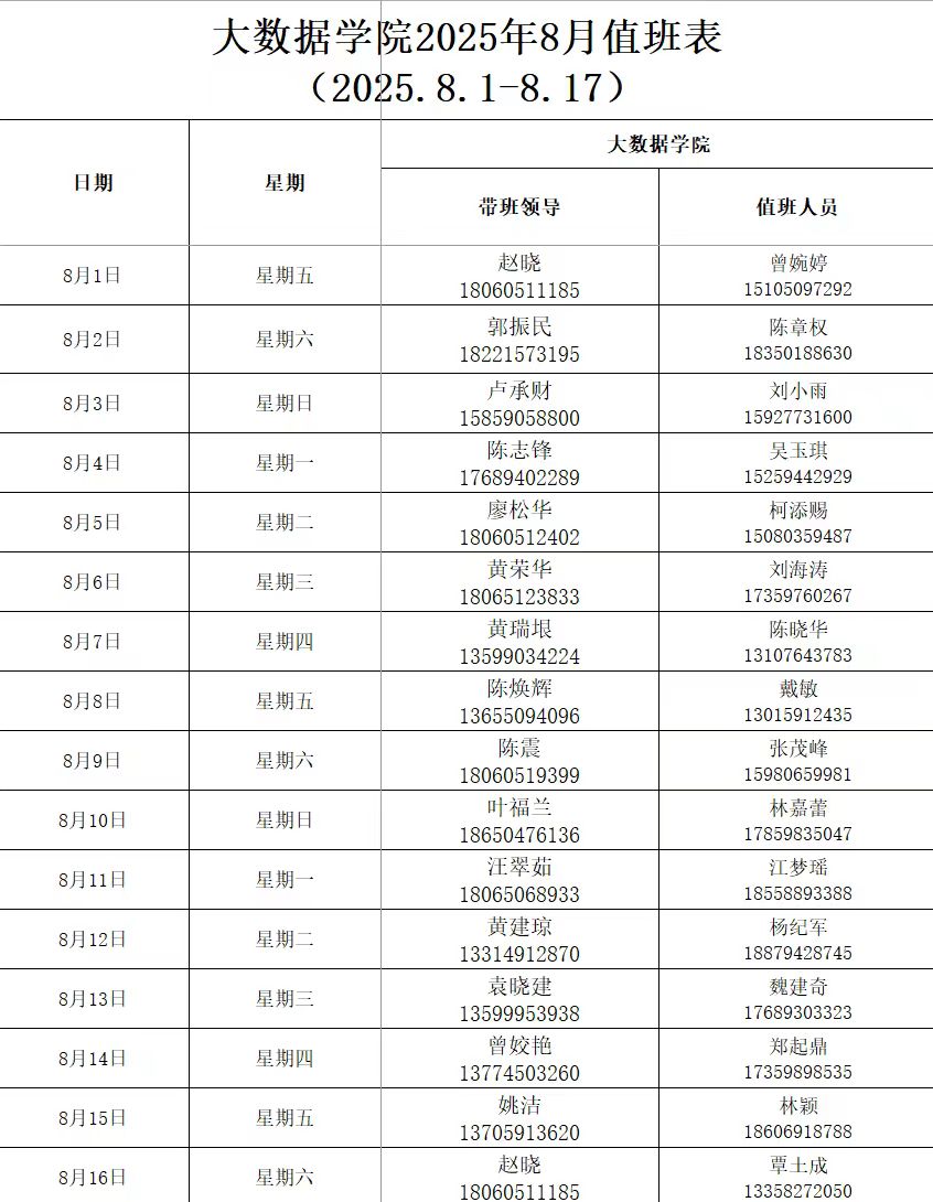 大数据学院2025年8月值班表(2025.8.1-8.17)