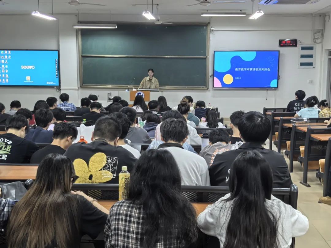 【迎评促建】大数据学院开展本科教育教学审核评估应知应会学习主题班会 为进一步做好我校本科教育教学审核评估工作,夯实迎评基础,提高我院学生对迎评工作的重视程度和认知深度,促进迎评知识的学习和交流,营造良好的迎评氛围,我院于11月10日开展审核评估应知应会学习主题班会。 主题班会从校史校情、专业前景、审核评估政策、意义等方面进行学习。要求同学们以最佳状态迎接评估,自觉维持良好的课堂秩序、积极参与教学活动、展现数院学子积极向上的精神风貌。 班会强调此次审核评估对我校深化教育教学改革,提高教育教学水平和人才培养质量至关重要,与学校未来长远发展息息相关,号召同学们通过审核评估知识学习,形成了“人人参与、人人学习”氛围,为我校迎评工作做好准备。 大数据学院办公室 2024年11月12日