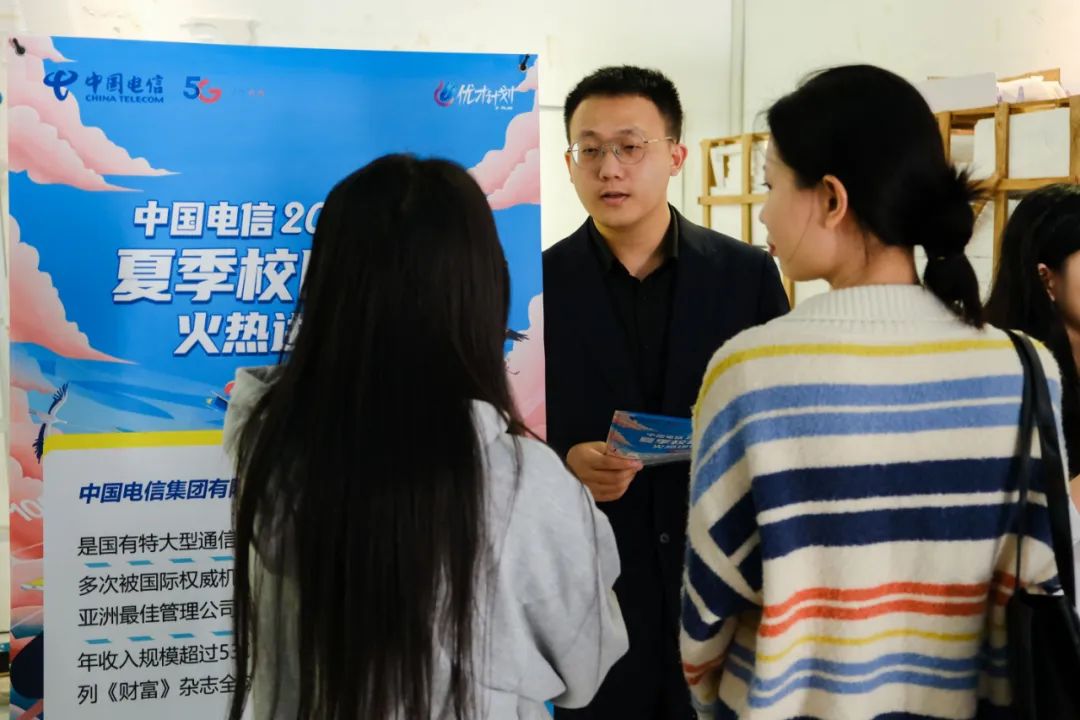 招聘会现场的交流声和咨询声此起彼伏,毕业生带着简历积极与各用人单位沟通交流,寻找适合自己的岗位。用人单位的负责人热情回应毕业生,详细介绍单位情况,并耐心解答求职者问题。