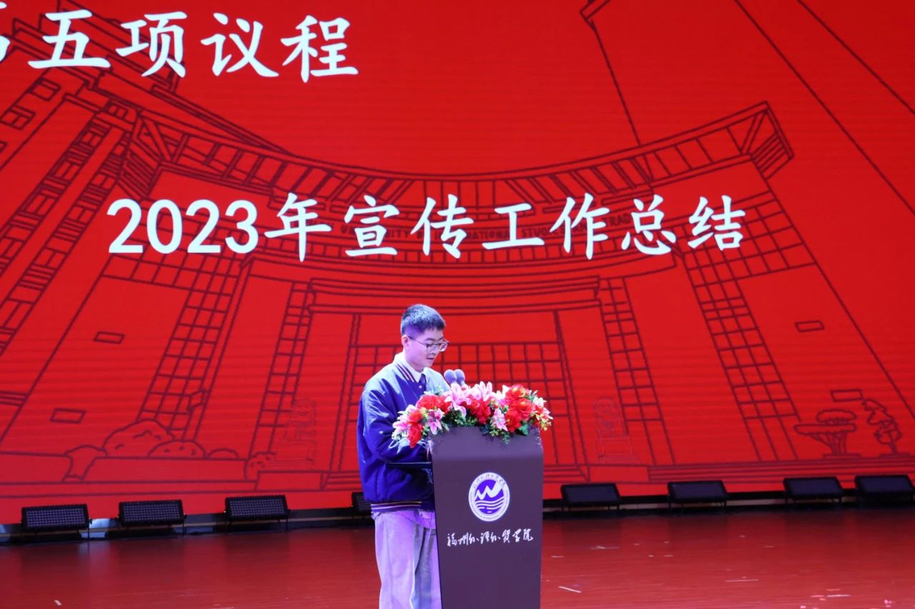 付起对学院2023年宣传工作作全面总结,他肯定了学院全体师生为学院宣传工作的辛苦付出,在新的一年里,团学将持续运用好新媒体,通过图文结合、视听结合,促使学院宣传工作更上一层楼。