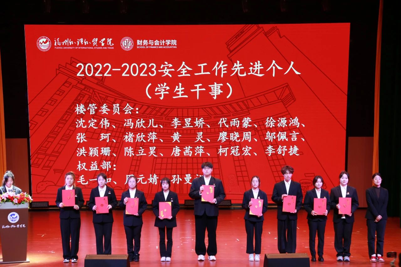 刘佳佳宣读《关于表彰2022-2023学年财务与会计学院楼管委员会和权益部优秀学生干部、优秀干事的决定》