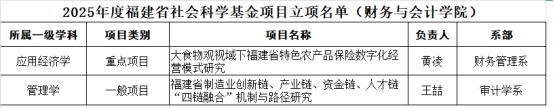 近日,福建省社会科学规划办公室公布了2025年度福建省社会科学基金项目立项名单。我院教师申报的2个项目成功获批,其中重点项目1项、一般项目1项,彰显了我院在社科研究领域的学术竞争力。
