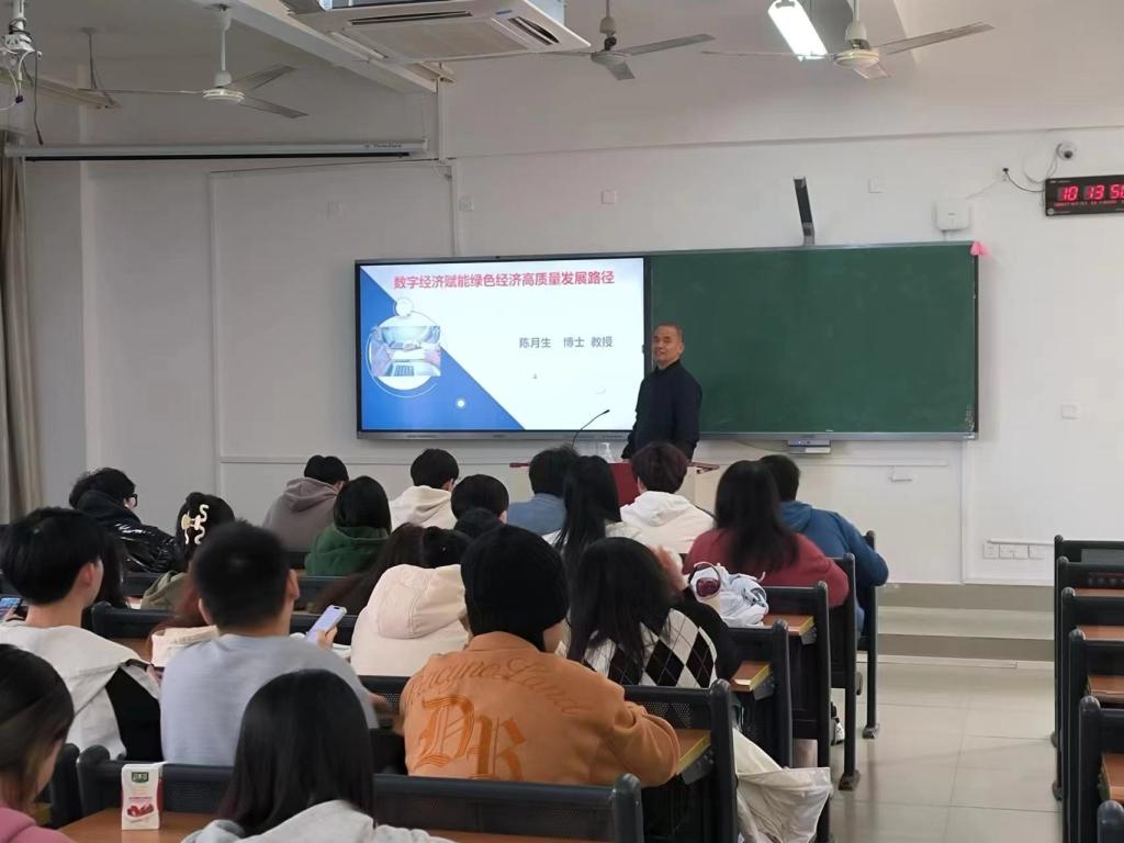 2023年11月5日下午,我院资产评估系的陈月生老师在教学楼3301为2022级资产评估专业的学生举办了一场题为“数字经济与绿色经济高质量发展路径”的讲座。