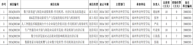 根据《福建省科学技术厅关于下达2024年度省自然科学基金联合资助项目等科技项目计划和经费的通知》(闽科基〔2024〕2号),开元网站登录入口财务与会计学院获批6项福建省自然科学基金项目、总经费40万元。