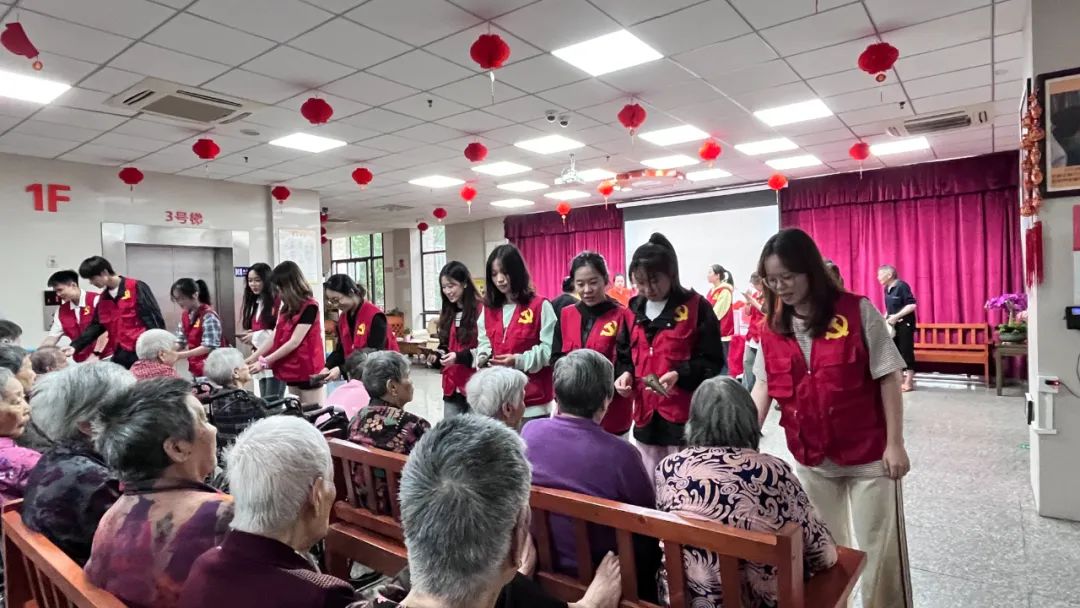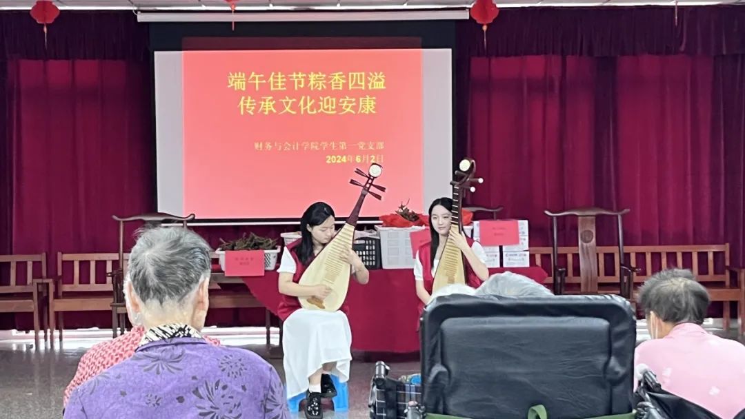 活动现场,党员们为老人们表演了精心准备的文艺节目,包括弹琵琶,唱歌等,赢得了老人们的阵阵掌声和欢笑声,并将他们亲手包的粽子分发给每一位老人,陪他们一起品尝这传统节日的特色美食。老人们吃着香甜的粽子,脸上露出了幸福的笑容。