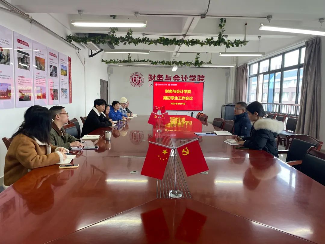 为确保新学期学生工作顺利进行,2月14日,福外财务与会计学院召开2025年春季学期期初学生工作会议。学院分党委书记、副院长李川,学院全体辅导员参加会议,会议由院办公室副主任潘云燕主持。