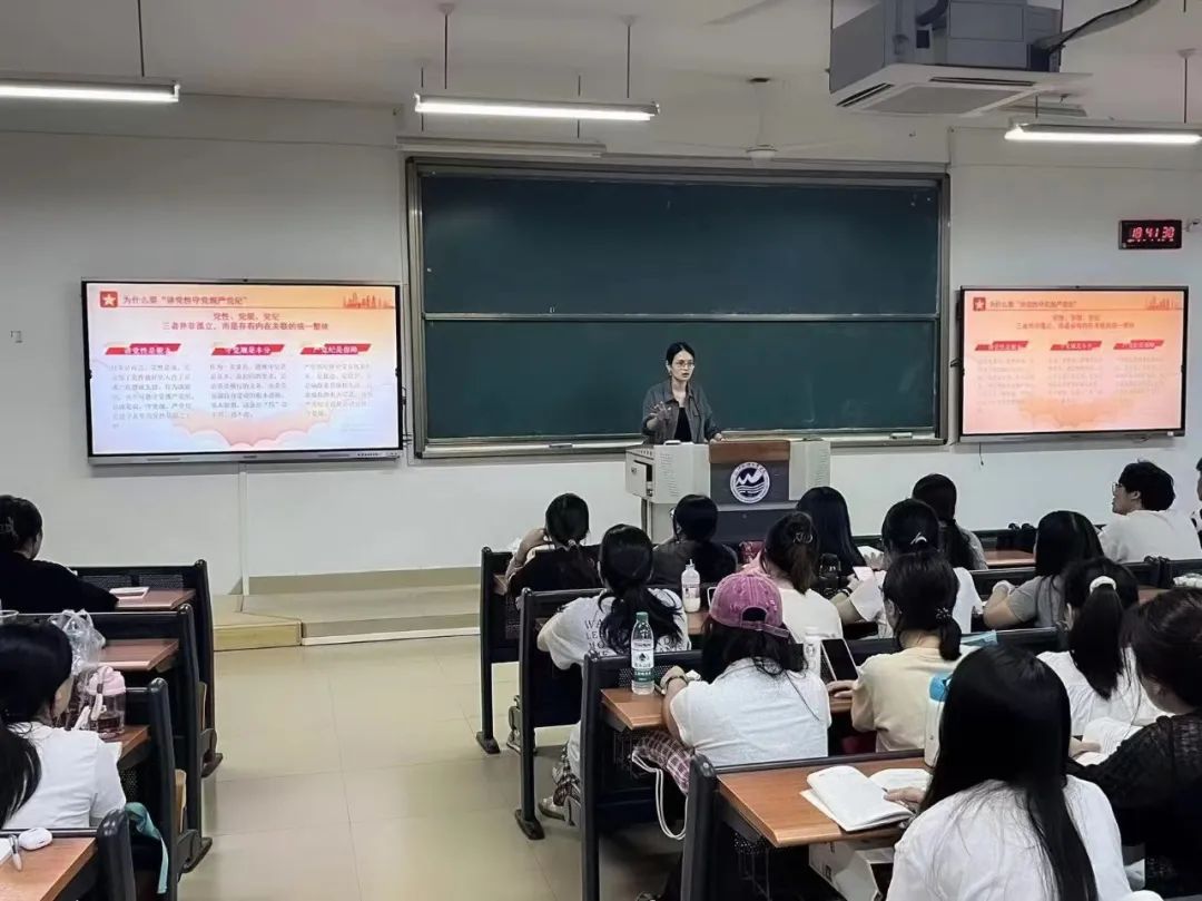 22日,学院邀请马克思主义学院林惜玲老师在实验楼3402开展以“学习党的二十届三中全会精神,奋力谱写新时代青春华章”为主题的思政课,旨在让学员们深刻认识到进一步全面深化改革、推进中国式现代化的重大意义,理解改革对于国家发展、民族复兴的关键作用。将全会精神与自身工作实际相结合,以学促干、以识促行,提高解决实际问题的能力。