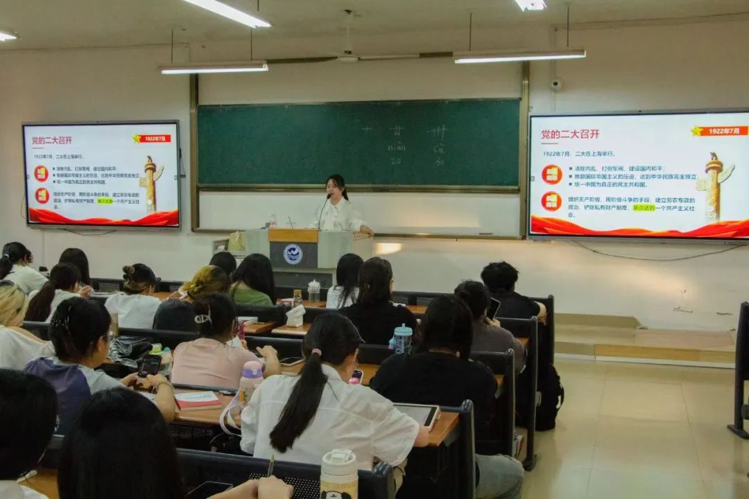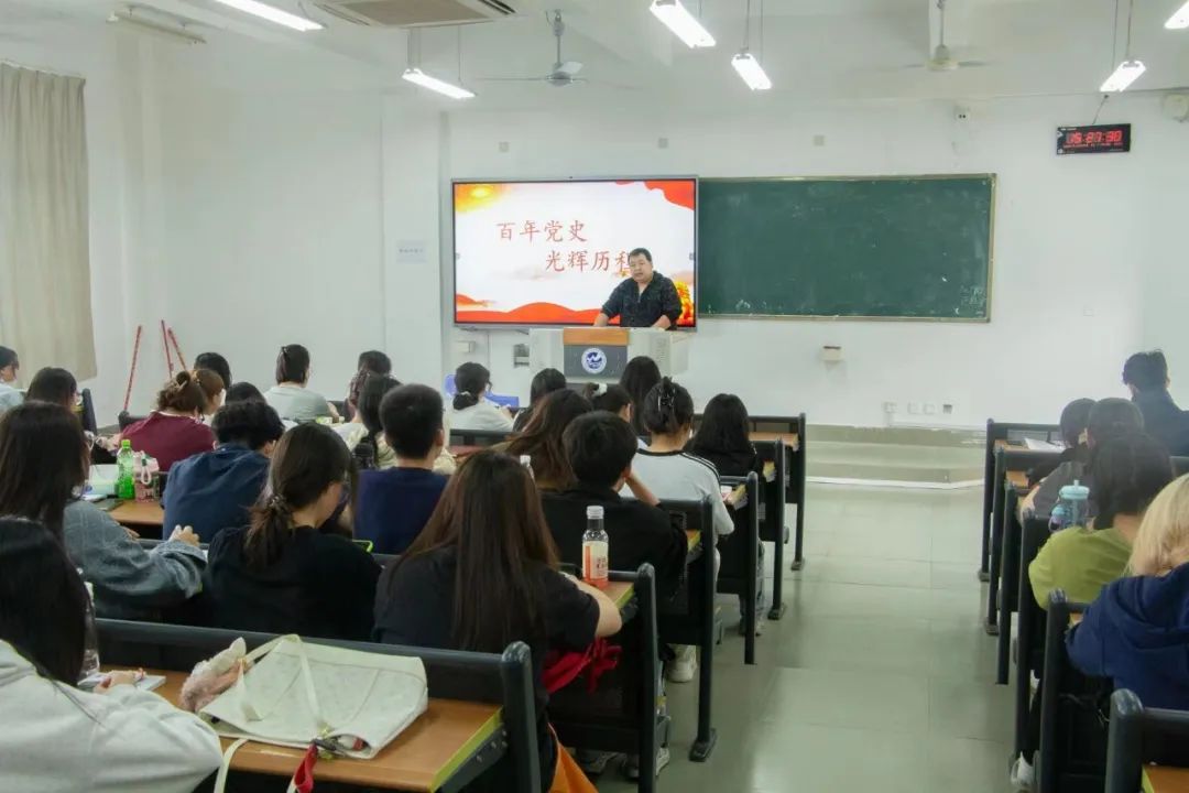 20日,学生第三党支部书记潘诚耀于教学楼1401开展“中国共产党的光辉历程”主题党课,他讲述了从1921年7月中国共产党建立至1949年10月中华人民共和国成立以来的基本战役和各类会议,为同学们诠释了党的百年历史主流本质就是不懈奋斗史、不怕牺牲史、理论探索史、为民造福史、自身建设史。