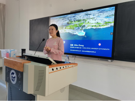 会上,英国普利茅斯大学中国办公室代表Miko Zhang进行宣讲。她对英国普利茅斯大学进行了介绍,对两校合作的2+“2”、3+“1”本科生项目优势专业、入学要求、申请流程、留学生活、学生未来发展规划进行了指导。