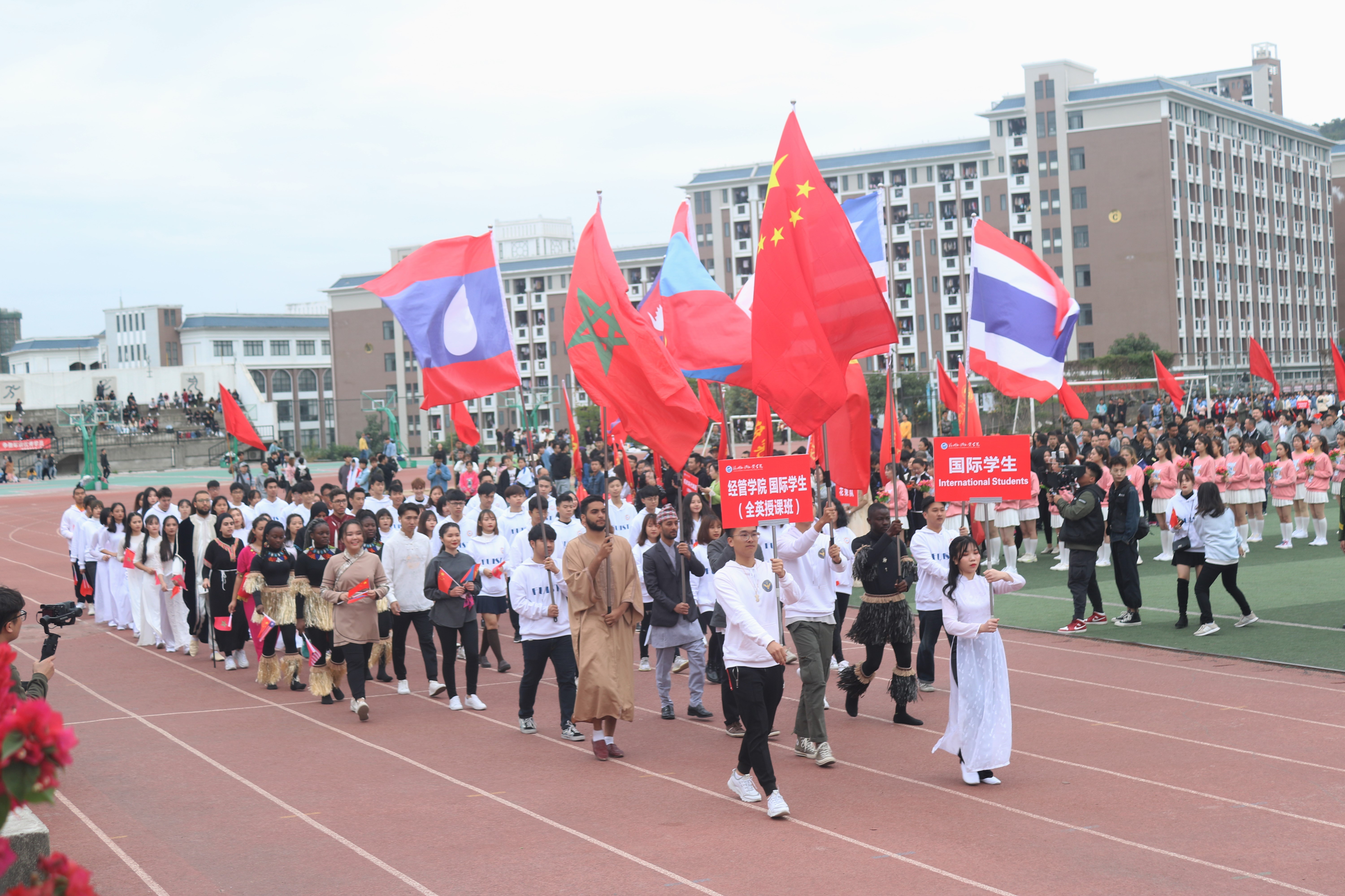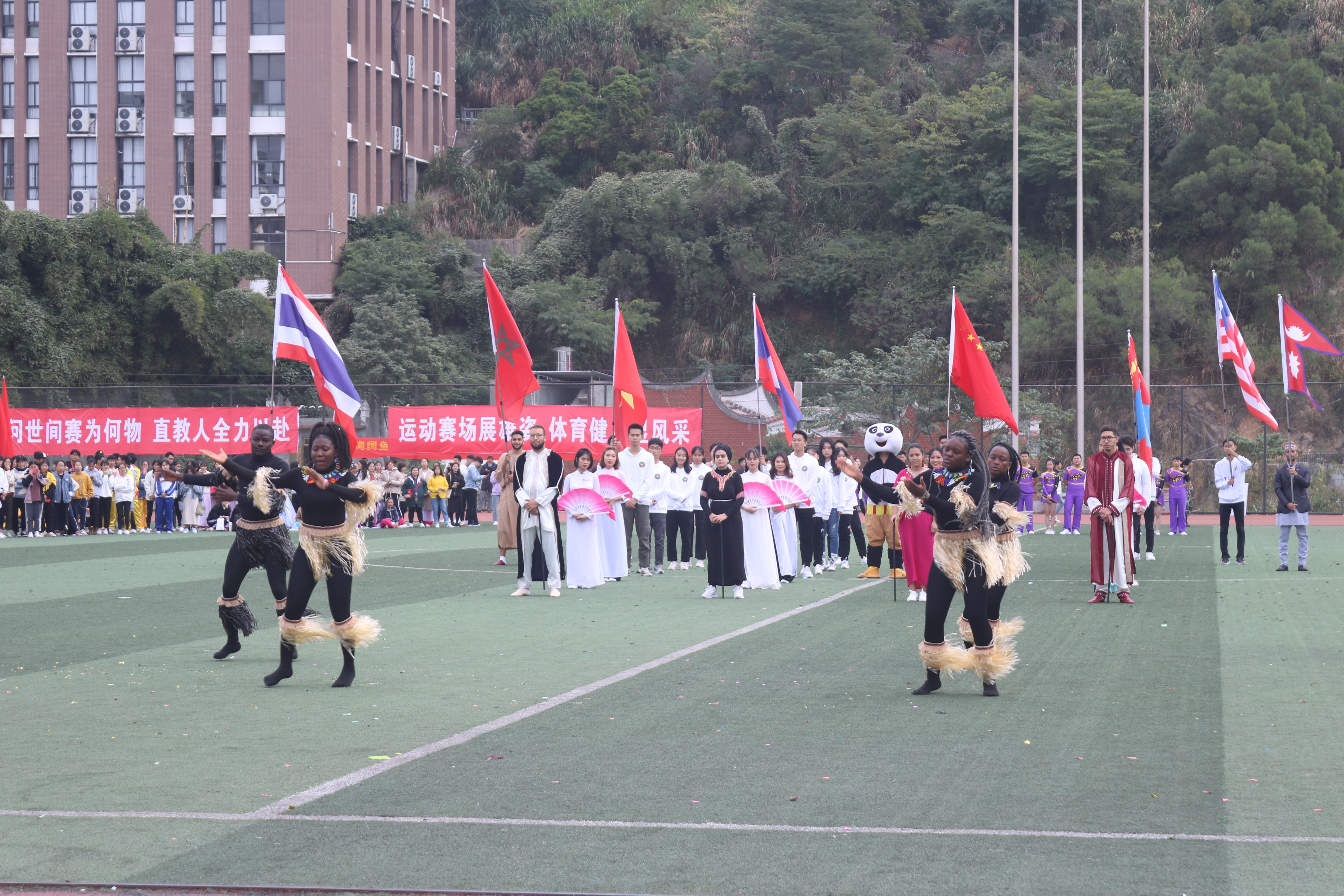 目前,我校有来自蒙古、利比里亚、摩洛哥、越南、泰国、老挝、尼泊尔7个国家的70余名国际本科生。国际学生积极为运动会献上精彩的舞蹈,彰显了他们热情和乐观向上的生活态度。学校将继续为中外师生营造国际化的学习交流环境,创造更精彩的校园生活,创造更加美好的未来!