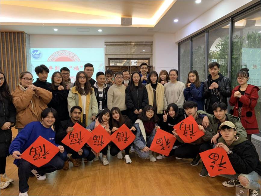 随着中国春节的临近,为加强国际学生对中华优秀传统文化的了解,激发其对中国文化的兴趣与热爱,强化人文综合素质培养,12月28日下午,国际教育中心组织学校书法协会、国际学生在中华文化体验馆举办了“新年到,‘福’到”汉字书法活动。