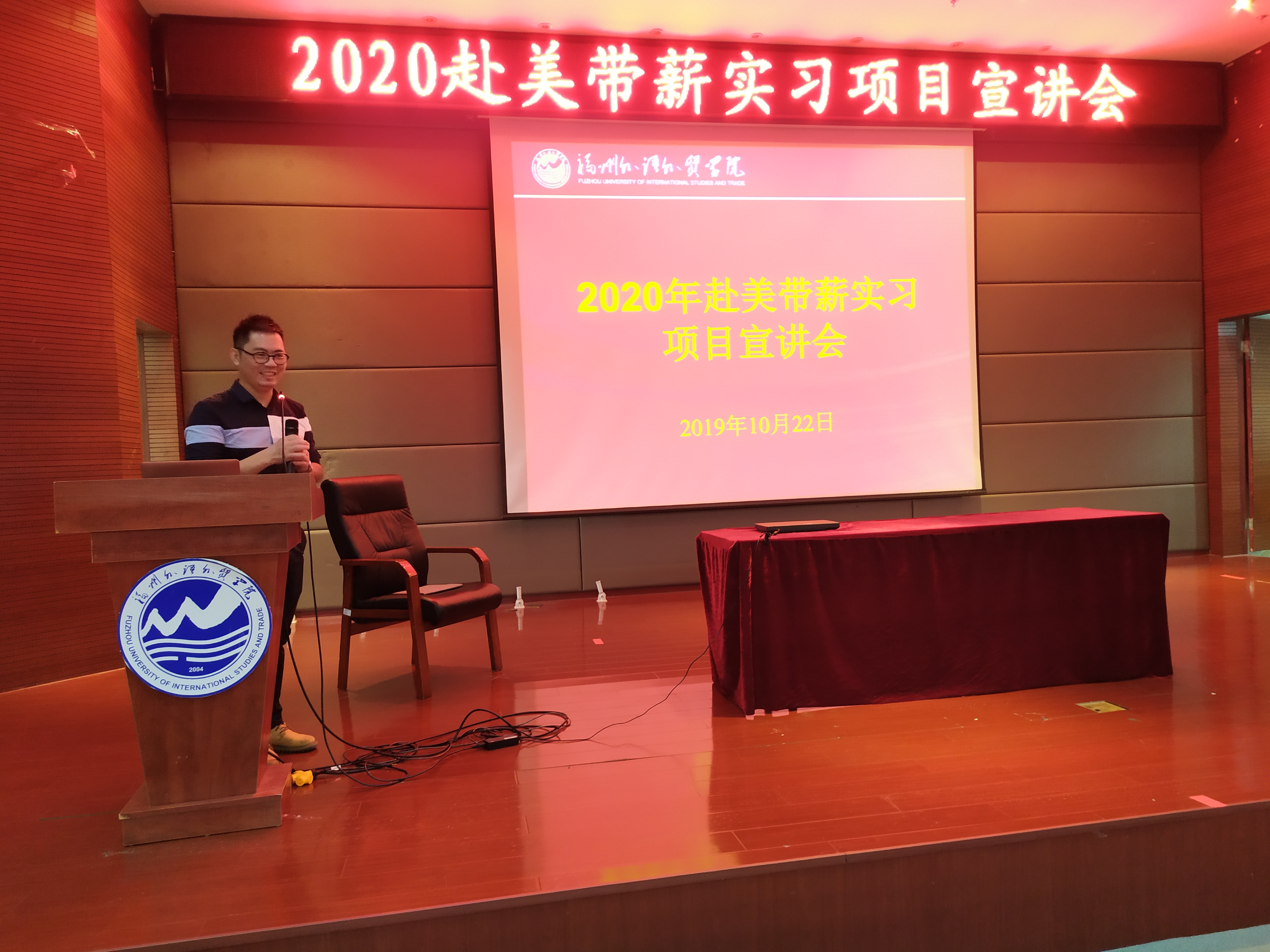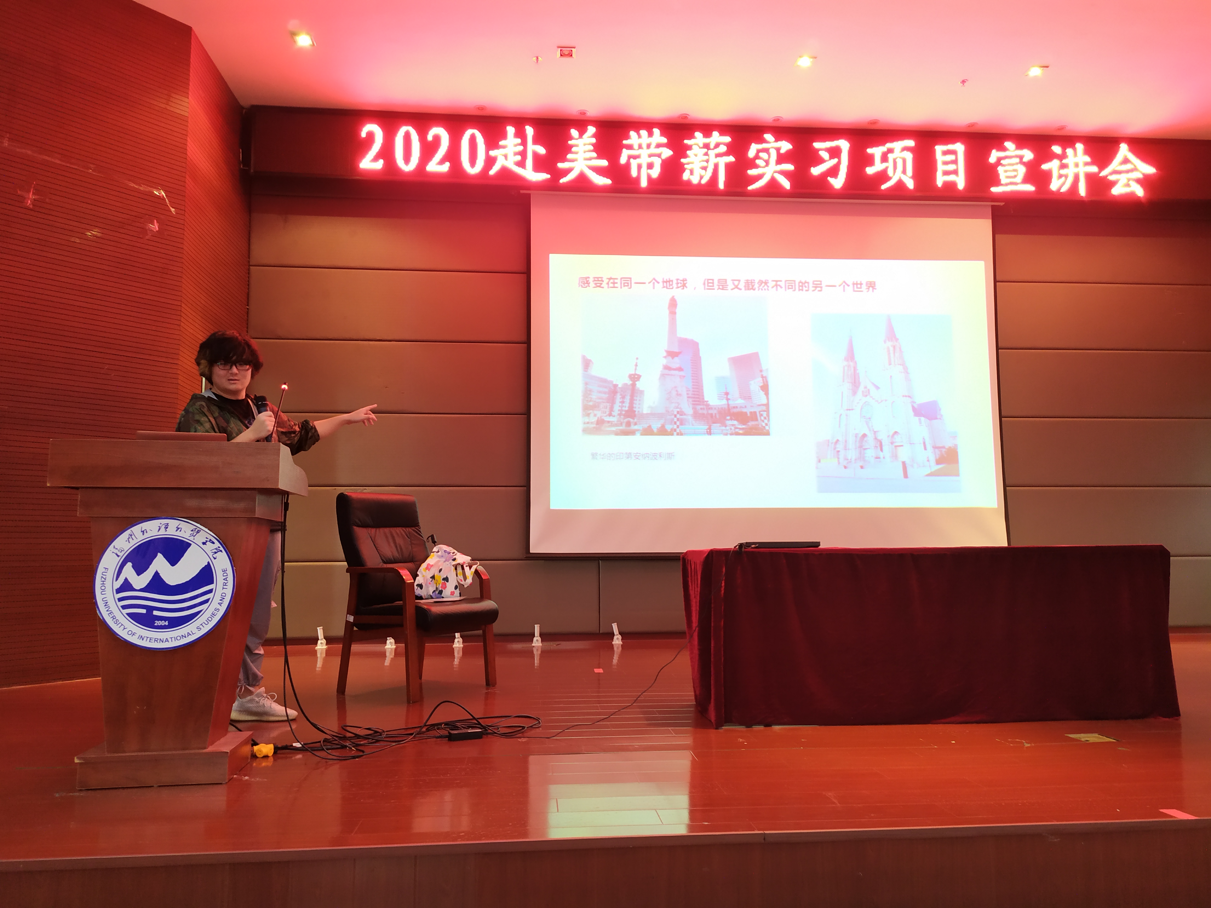 10月22日下午,我校举办2020赴美带薪实习项目宣讲会。宣讲会在学术报告厅举行,由国际教育中心相关同志主持,项目方代表及来自全校各学院的200多名意向学生参与了活动。