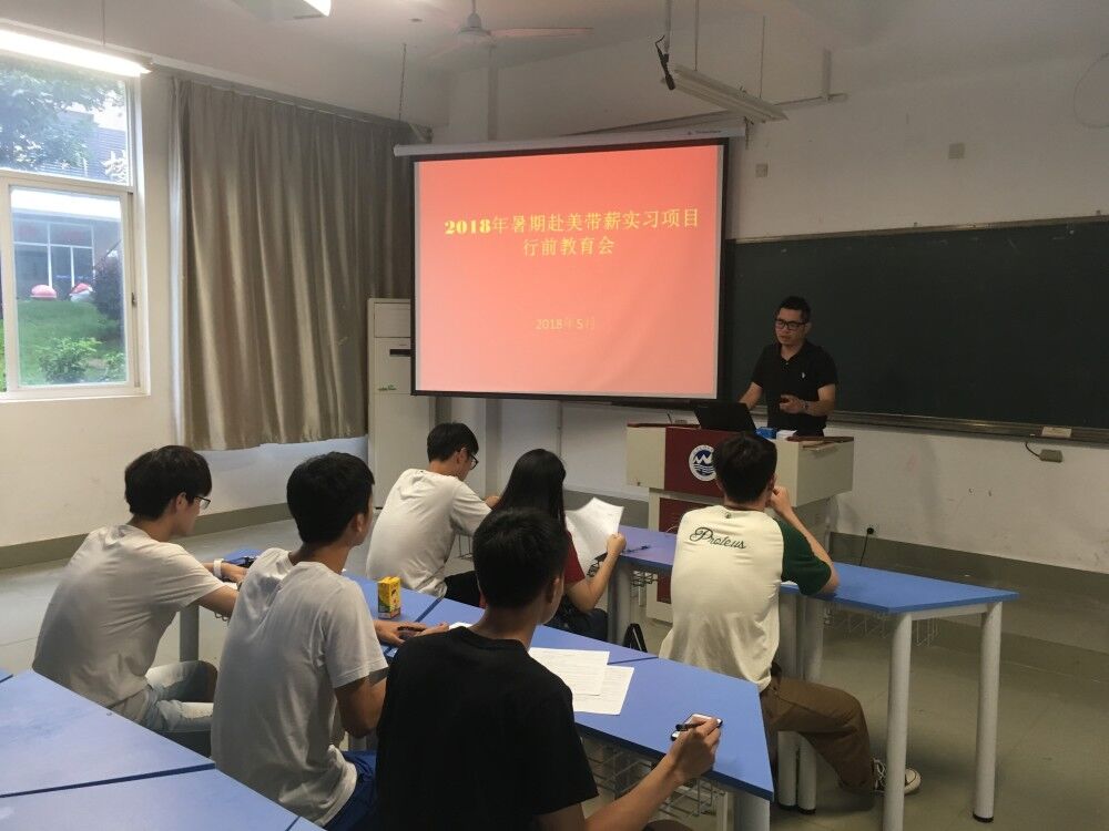 5月29日,2018年暑期赴美带薪实习项目行前教育会在教2-103举行,全体项目学生及项目方代表参加了会议。