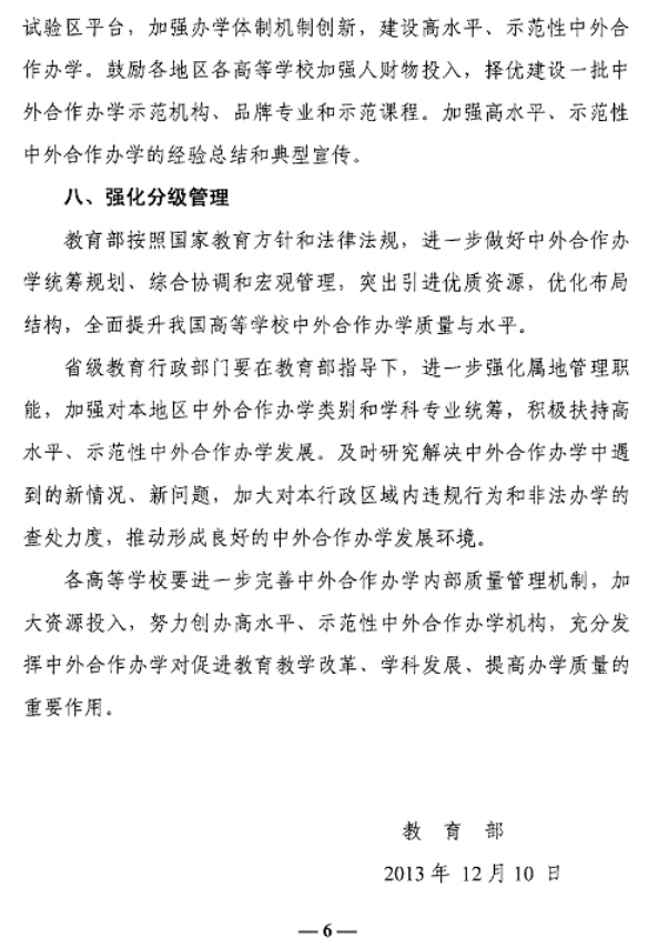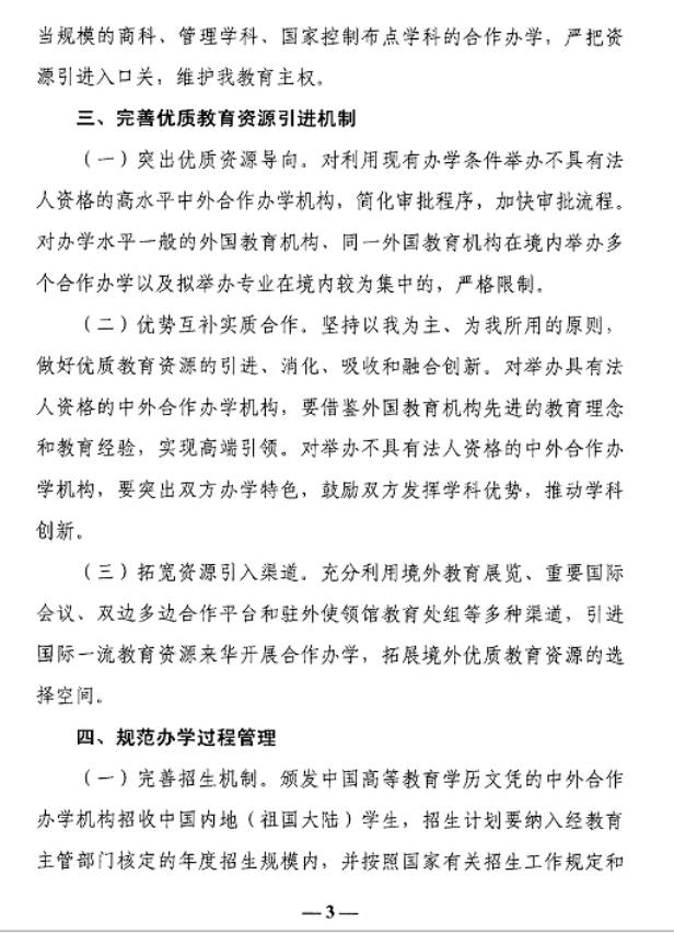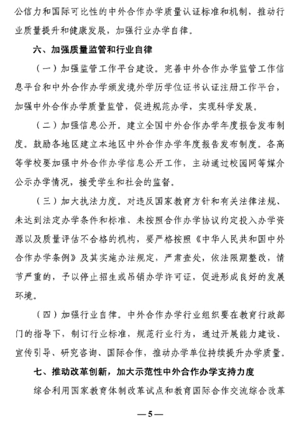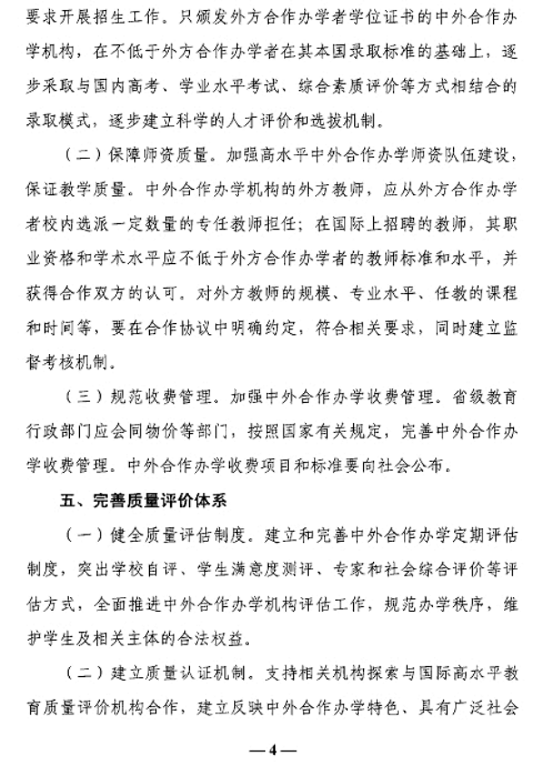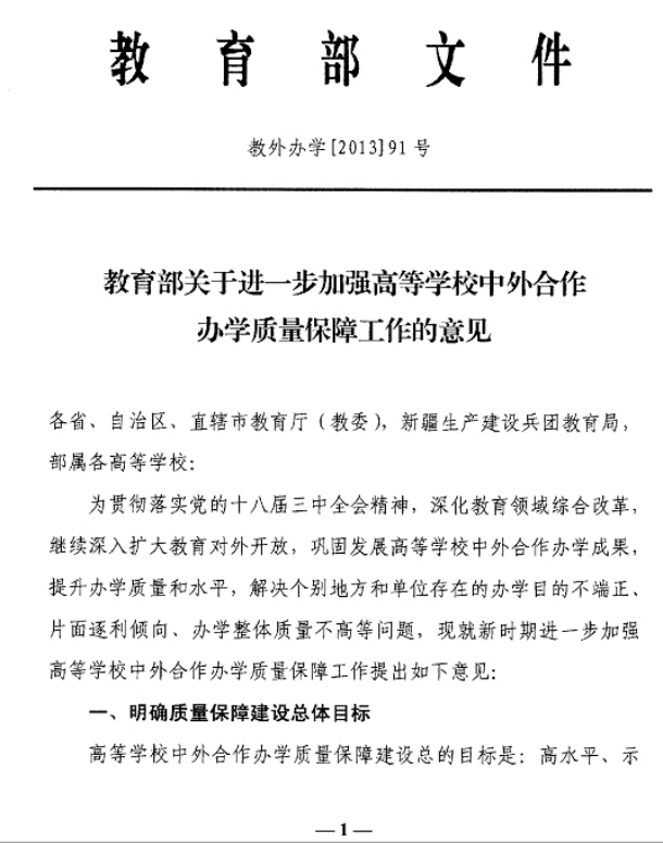 教育部关于进一步加强高等学校中外合作办学质量保障工作的意见