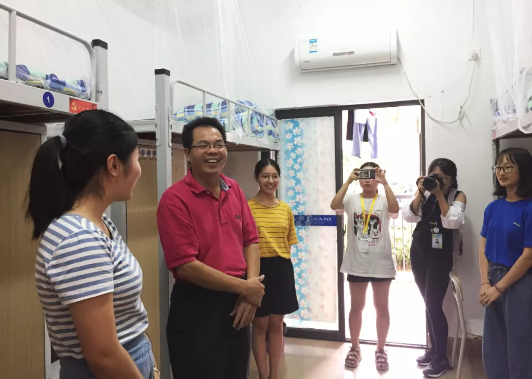 9月8日至9日,我校迎新工作全面展开,来自全国各地朝气蓬勃的2018级新生满怀憧憬走进福外,用欢声笑语点缀着校园,为学校增添了青春活力。9日下午和傍晚,校长沈斐敏,党委书记陈炳钦,常务副校长黄建平,党委副书记、副校长徐国立,校长助理吴钦红等领导分别来到新生宿舍,看望来自各地的新生,慰问迎新一线的师生员工。