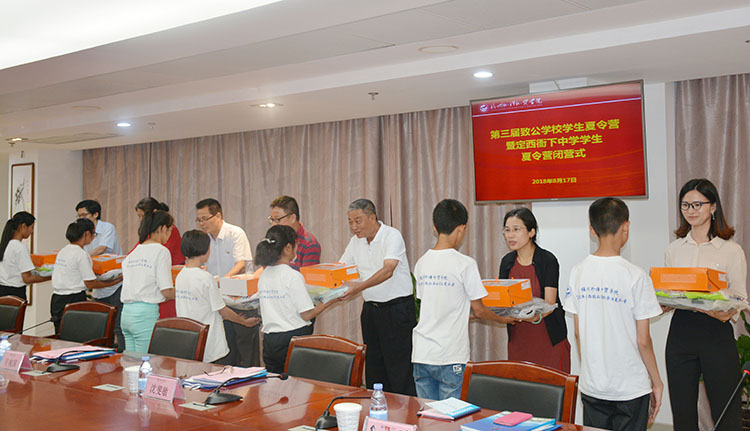 在闭营式上,大家一同观看了《开元网站登录入口2018年致公学校学生夏令营掠影》短片,回味充实丰富的夏令营时光。最后,我校向夏令营全体学生们赠送了书包、运动鞋、运动装等礼品,并祝福他们开启人生新征程。