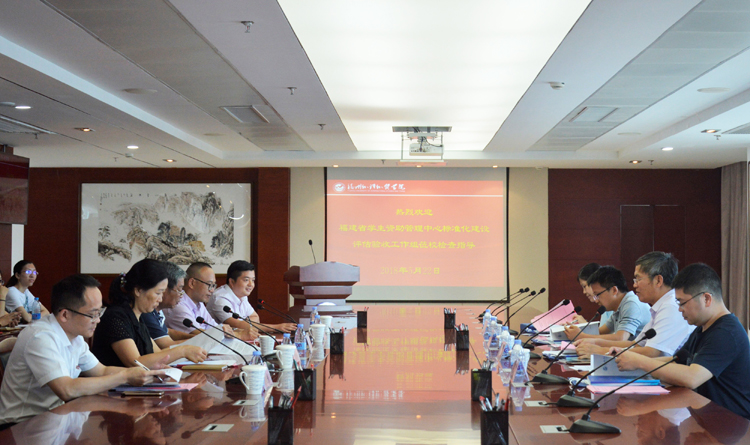 5月22日下午,省第四批学生资助管理中心标准化建设评估验收专家组一行4人,在组长、泉州师范学院学生处王泗水处长带领下,莅临我校开展学生资助管理中心标准化建设评估验收。我校校长沈斐敏,校党委副书记、副校长徐国立,校长助理吴钦红以及学校总会计师、学生发展中心负责人、各系党总支书记参加了评估验收。