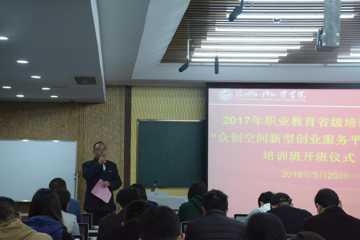 3月20日,由福建省教育厅、福建省人力资源和社会保障厅主办,我校承办的2017年度职业教育省级培训计划“众创空间新型创业服务平台建设”项目培训班开班式在我校教师发展中心举行。我校党委副书记、副校长徐国立及50名来自全省各职业院校的老师参加了开班式。