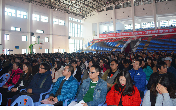 1月16日,我校在综合体育馆召开全体教职工大会,吴新星董事长,校党政班子成员、全体教职员工参加会议。沈斐敏校长主持大会。